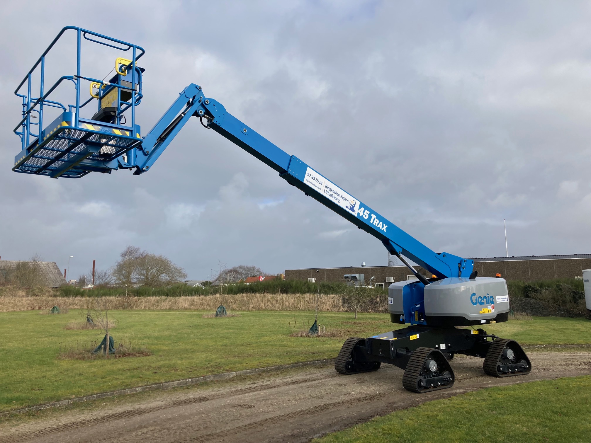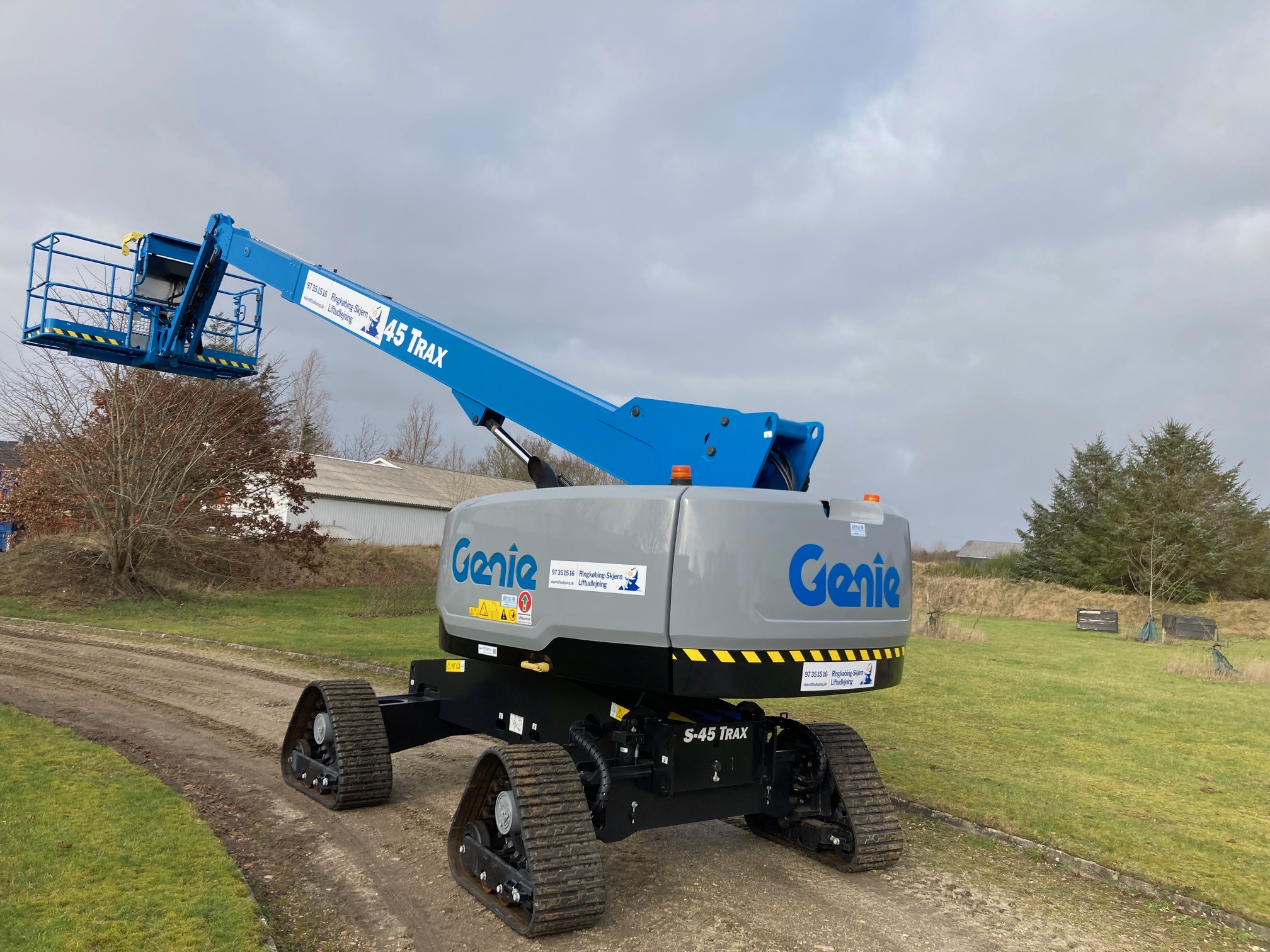 Genie S45 Trax er en Teleskop-Boomlift med 4 Bælter Fremragende terrænegenskaber i selv de mest hårde terræn dæk. 454 Kg i Kurven.